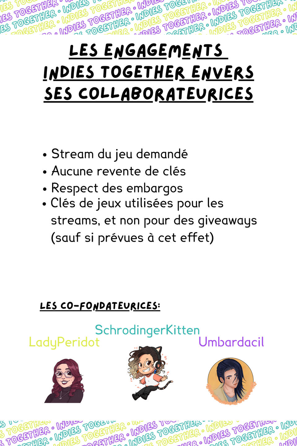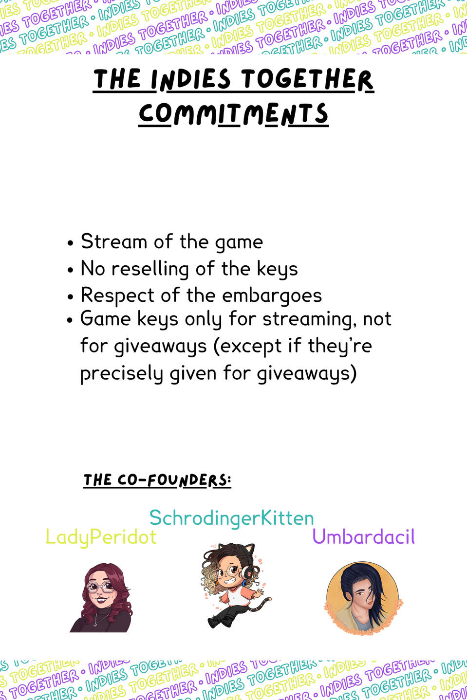 Indies Together, c'est un collectif né en 2025 créé par SchrodingerKitten, Umbardacil et LadyPeridot qui a pour but de mettre en avant les perles de jeux indépendants !Stream, posts, clips, avis Steam... Tout est bon pour soutenir les indés !